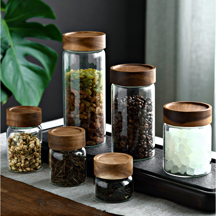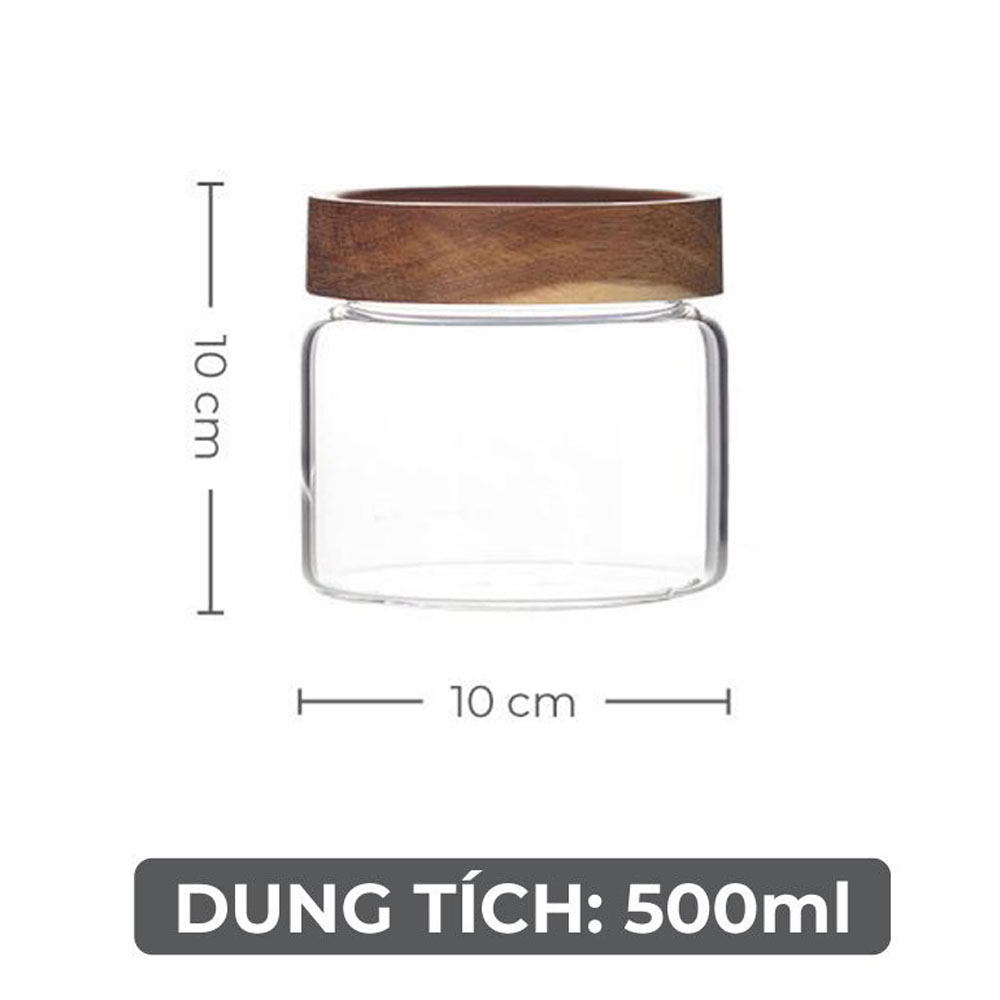 Hũ/ lọ thủy tinh nắp VẶN bằng gỗ, lọ thủy tinh đựng gia vị, đồ khô, thiết kế đẹp mắt và sang trọng