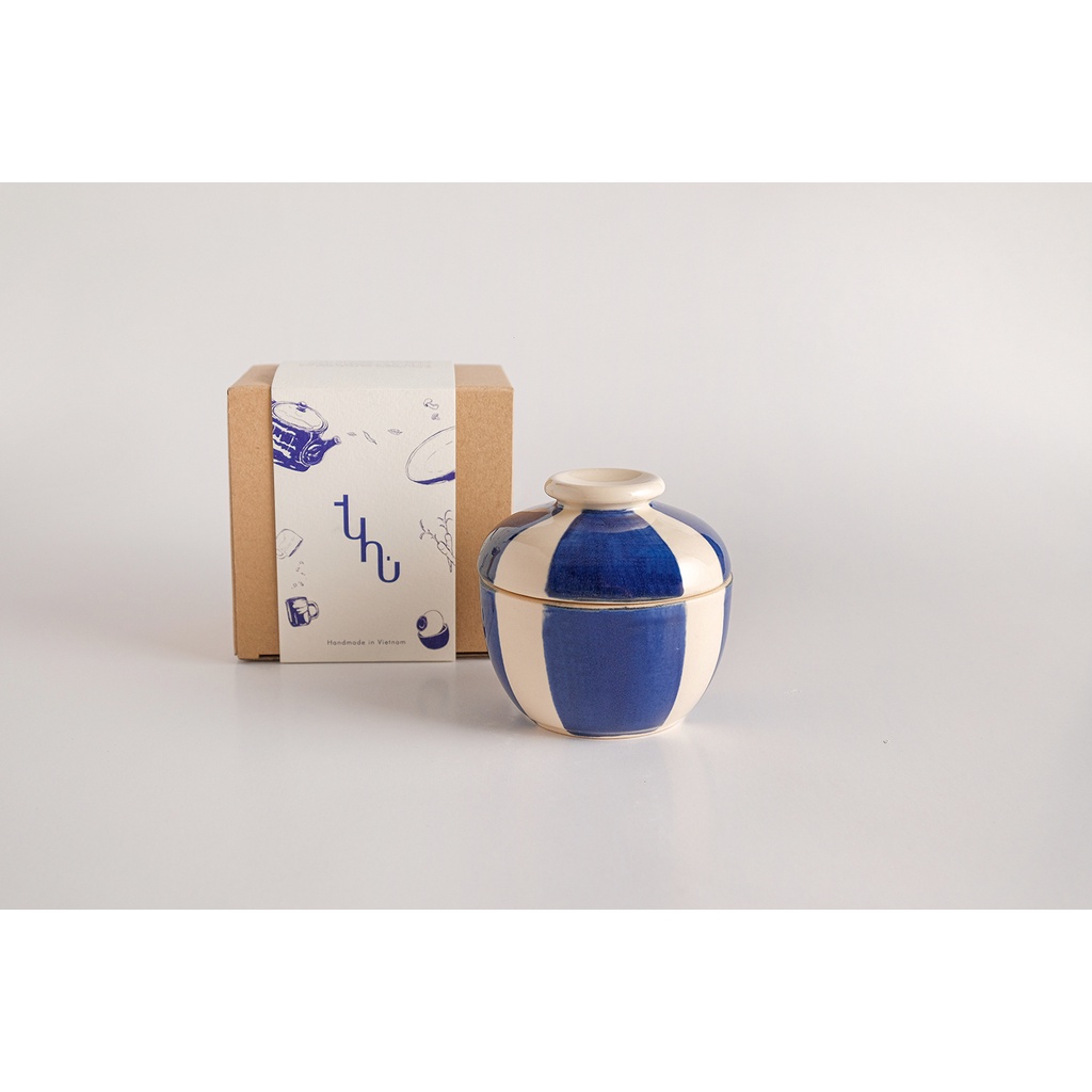 THỐ DUNG TÍCH 180ML CÓ NẮP GỐM THỦ CÔNG HOẠ TIẾT HIỆN ĐẠI