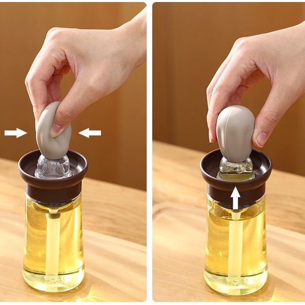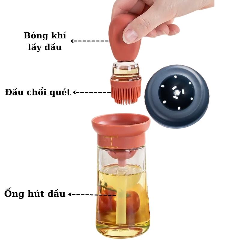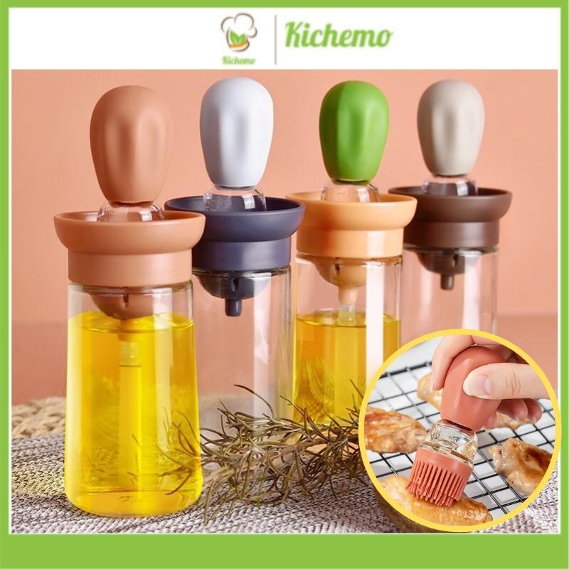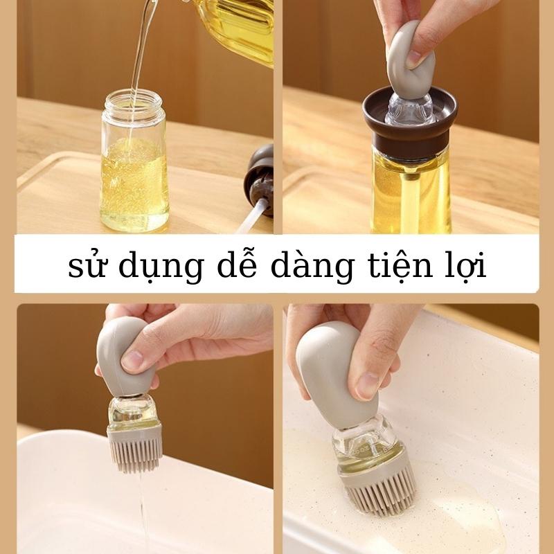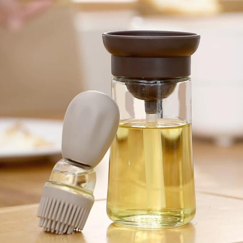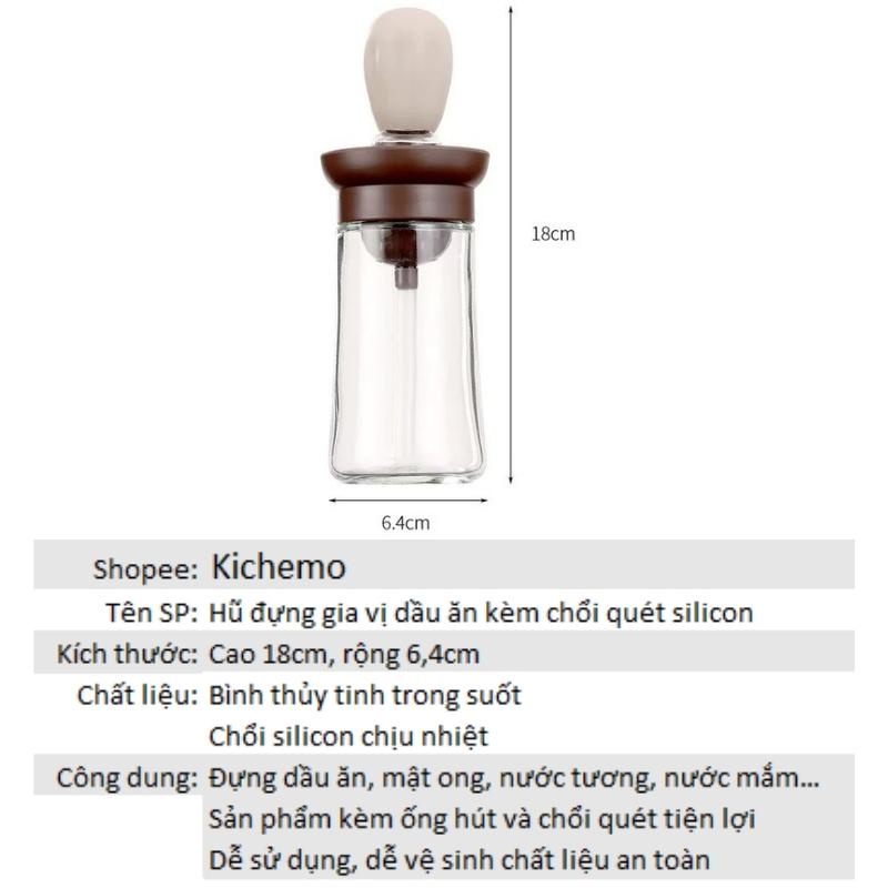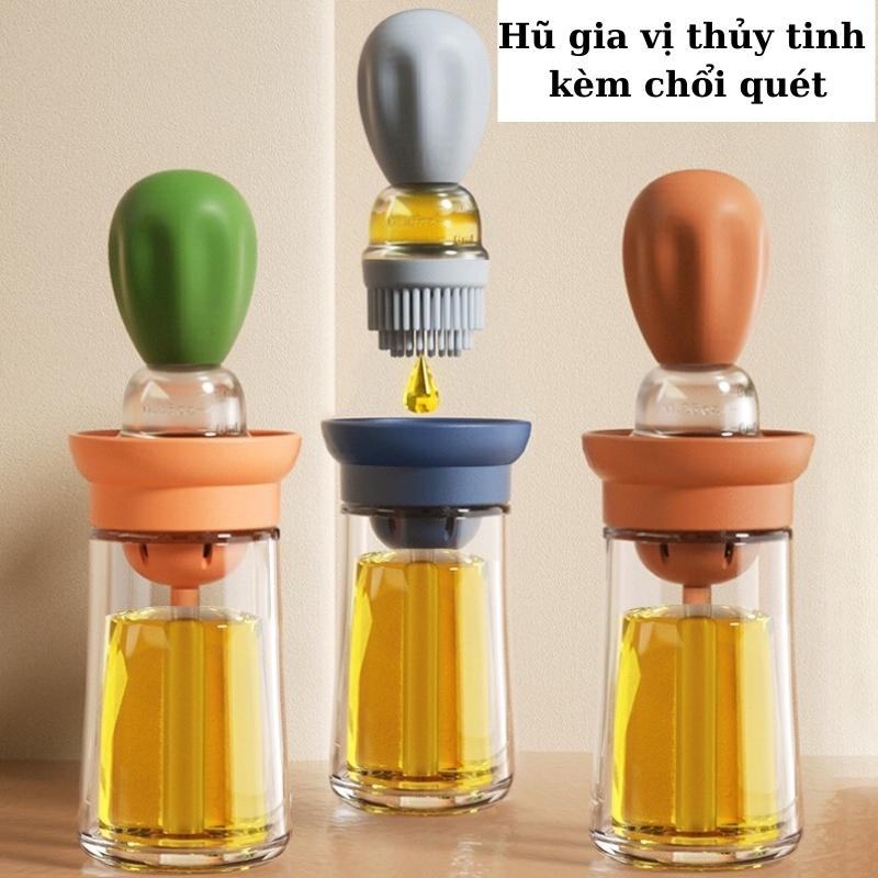 Hũ đựng gia vị thủy tinh lọ gia vị dầu ăn kèm chổi quét silicon