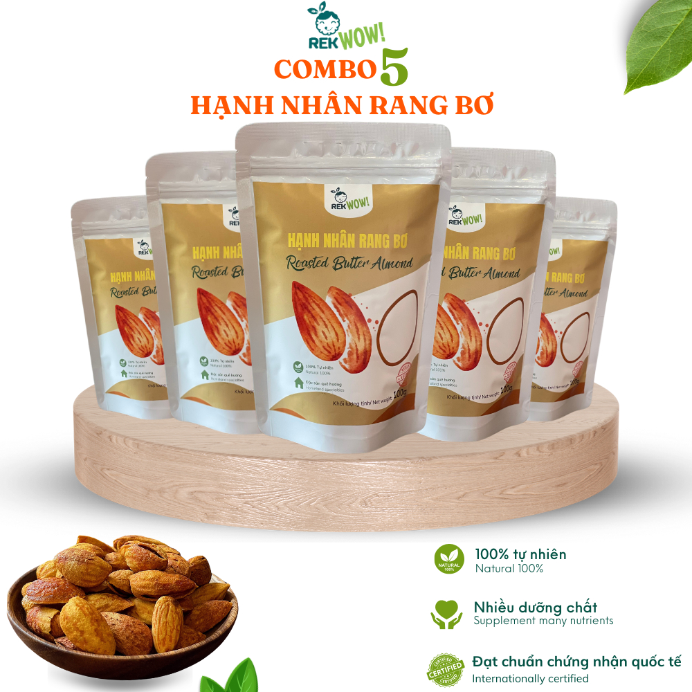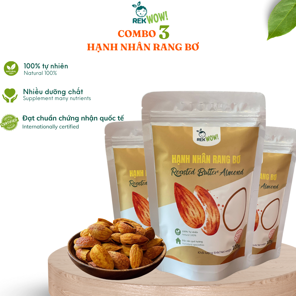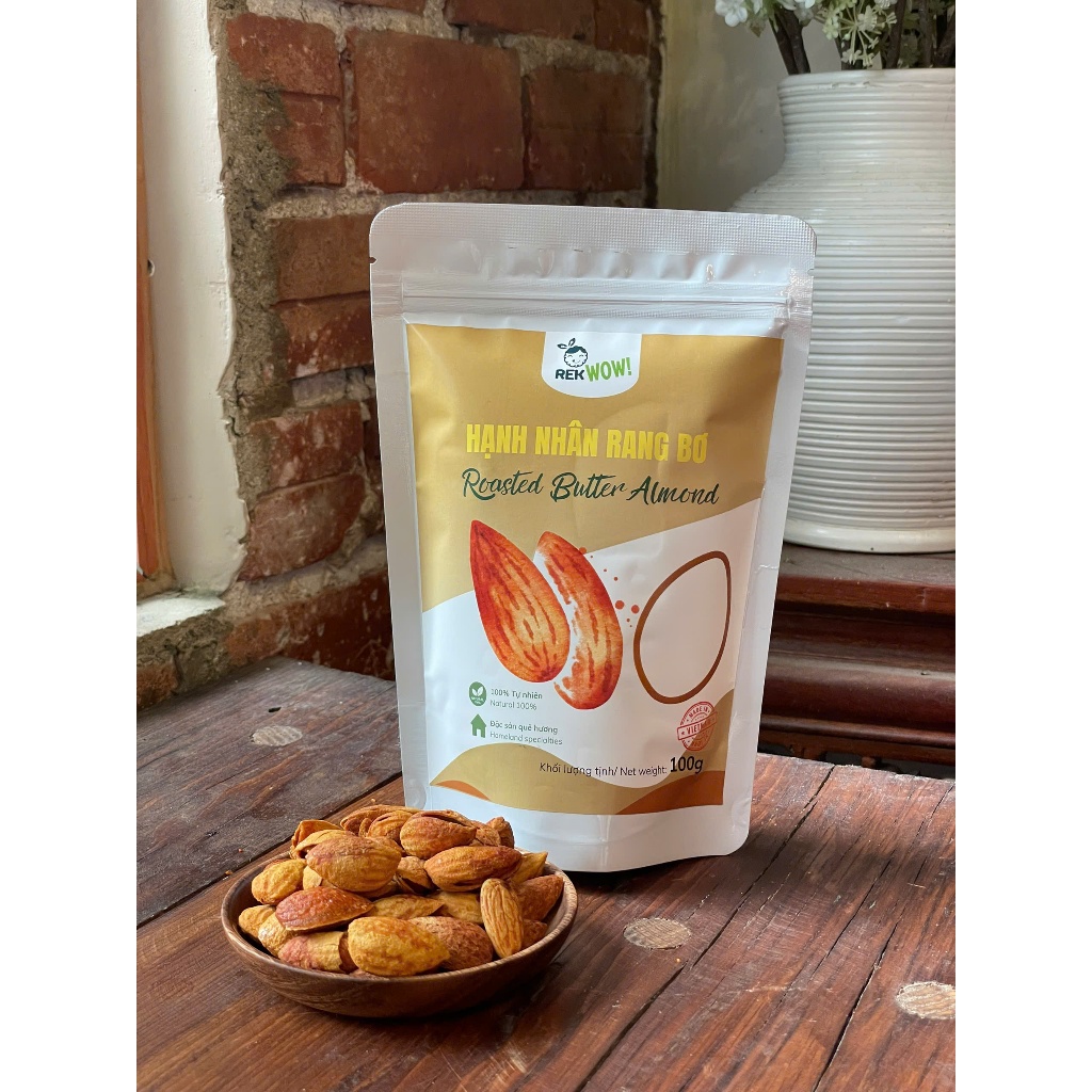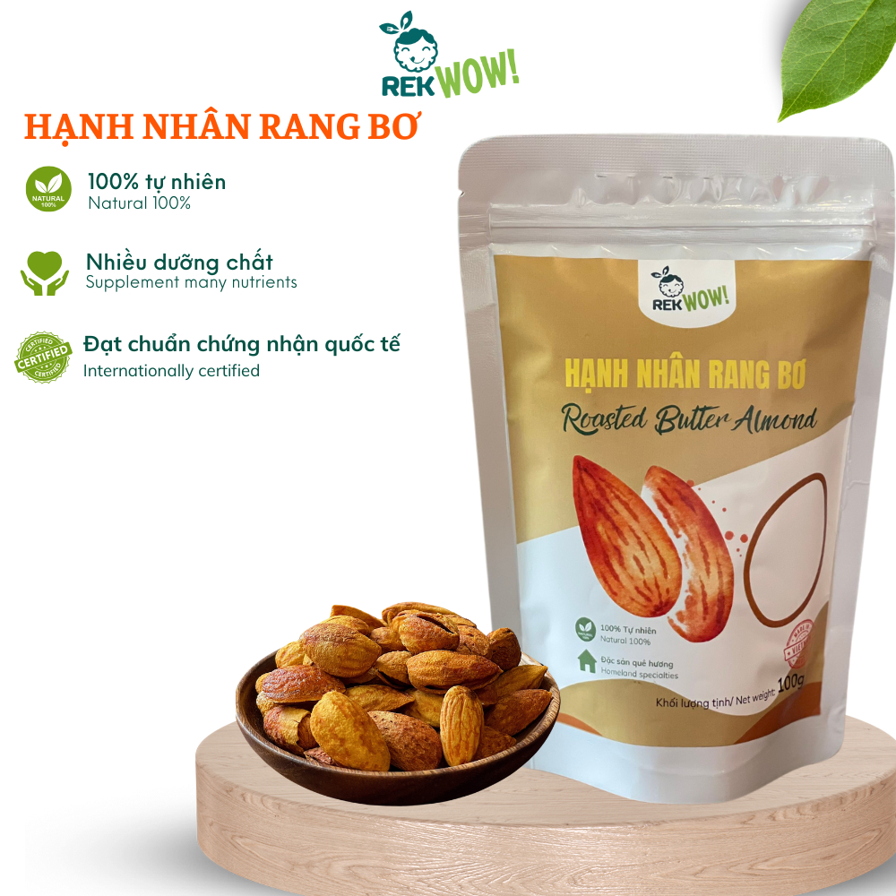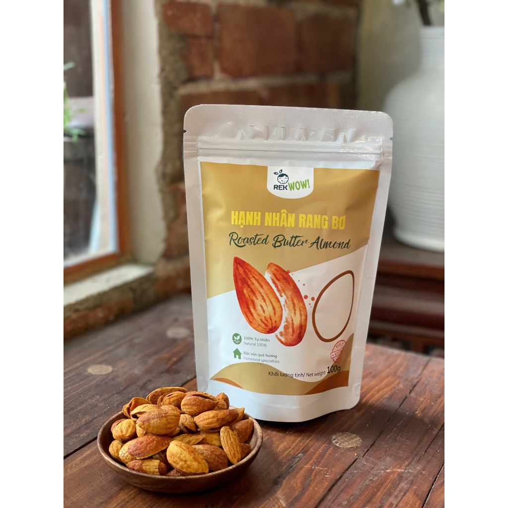 Hạnh Nhân Rang Bơ REK WOW - túi 100g - Ăn vặt tốt cho sức khỏe - Hạt/Trái cây sấy