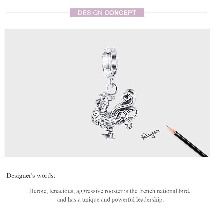 Hạt charm Bamoer SCC1337 bạc 925 hình con gà làm đồ trang sức thời trang