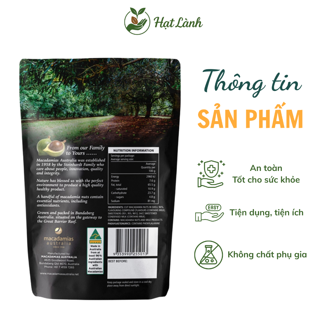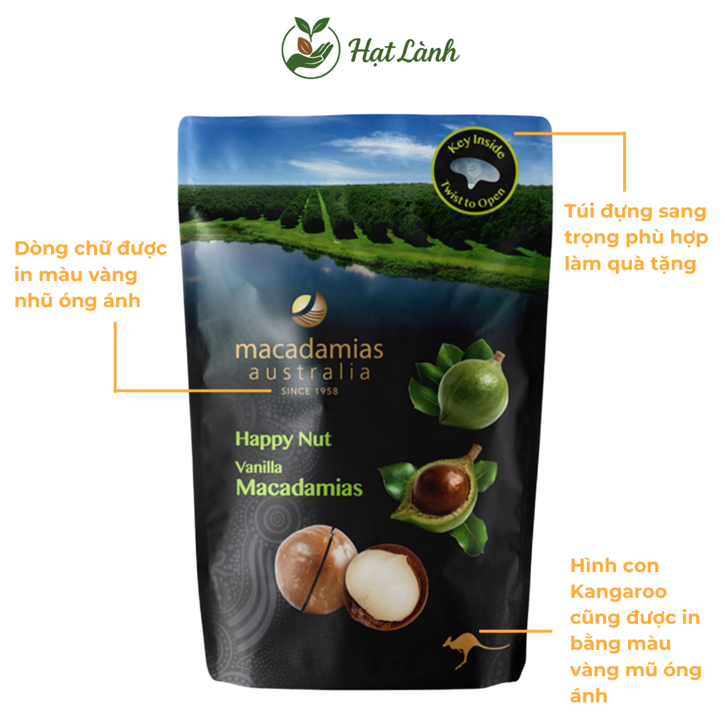 Hạt macca Úc Happy Nut hương vanila Túi 225G