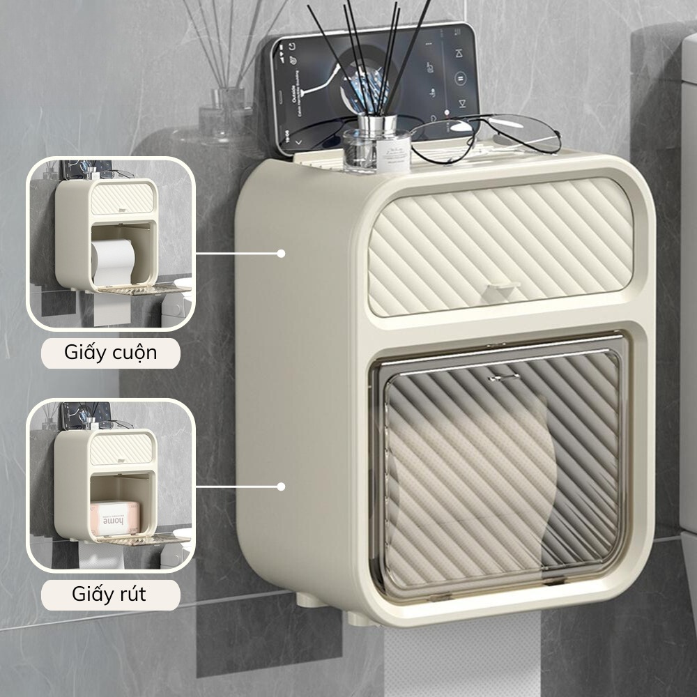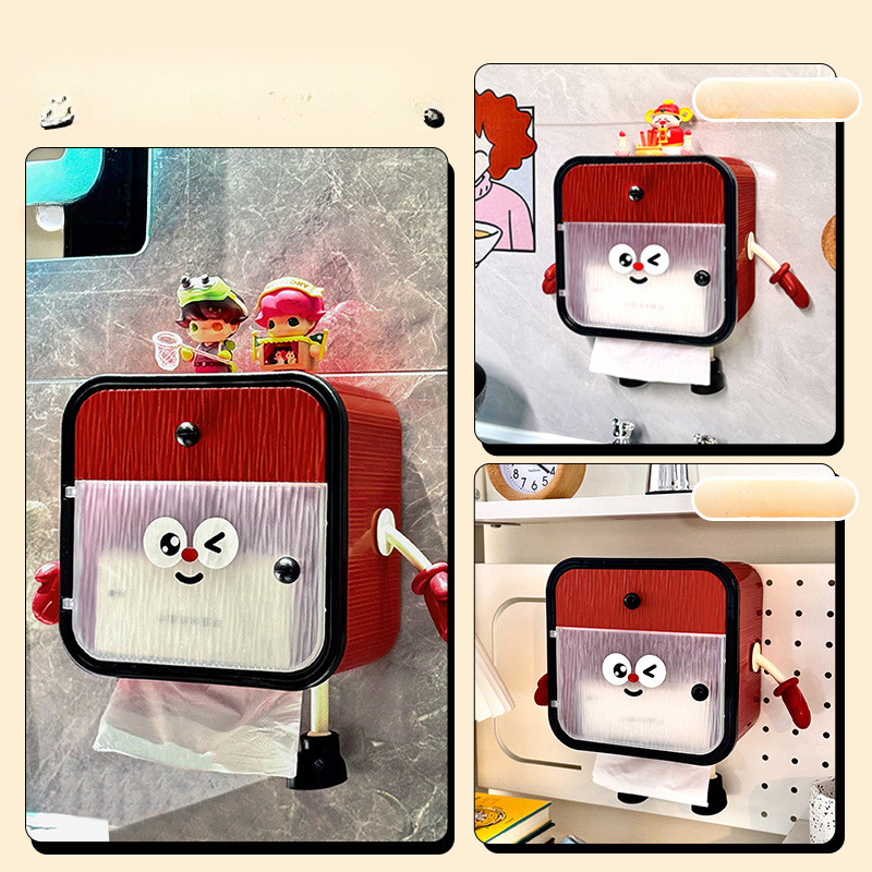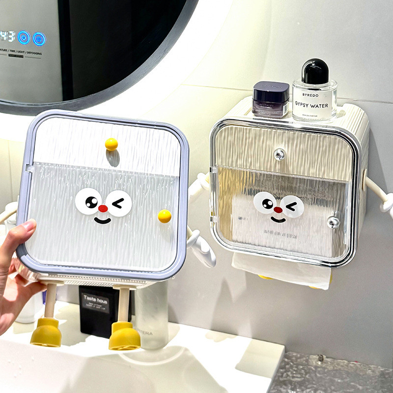 Hộp Đựng Giấy Vệ Sinh Dán Tường Nhà Tắm Hình Mặt Cười Có Nắp Chống Nước Kèm Kệ Đựng Đồ Đa Năng