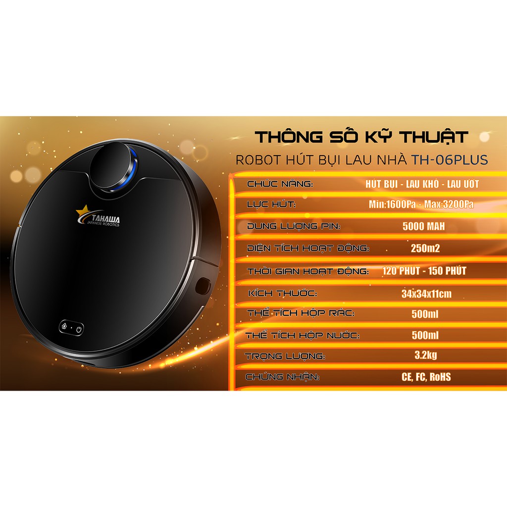 Hộp bụi robot hút bụi lau nhà Tahawa Nhật Bản TH-06 Plus - Dung tích chứa cực lớn 500ml, đi kèm chổi vệ sinh hộp bụi