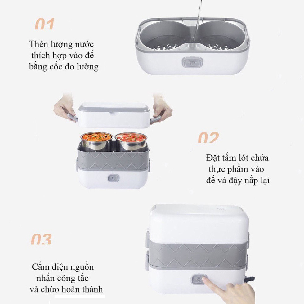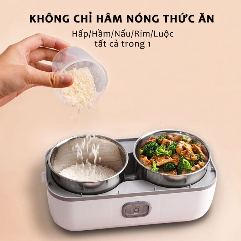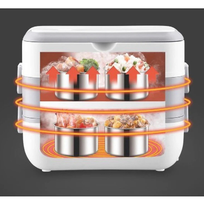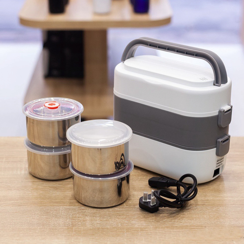 Hộp cơm cắm điện văn phòng 2 tầng 4 bát inox giữ nhiệt, hâm nóng tự nấu chín nhanh nhỏ gọn, tiện lợi DIDOOGLT