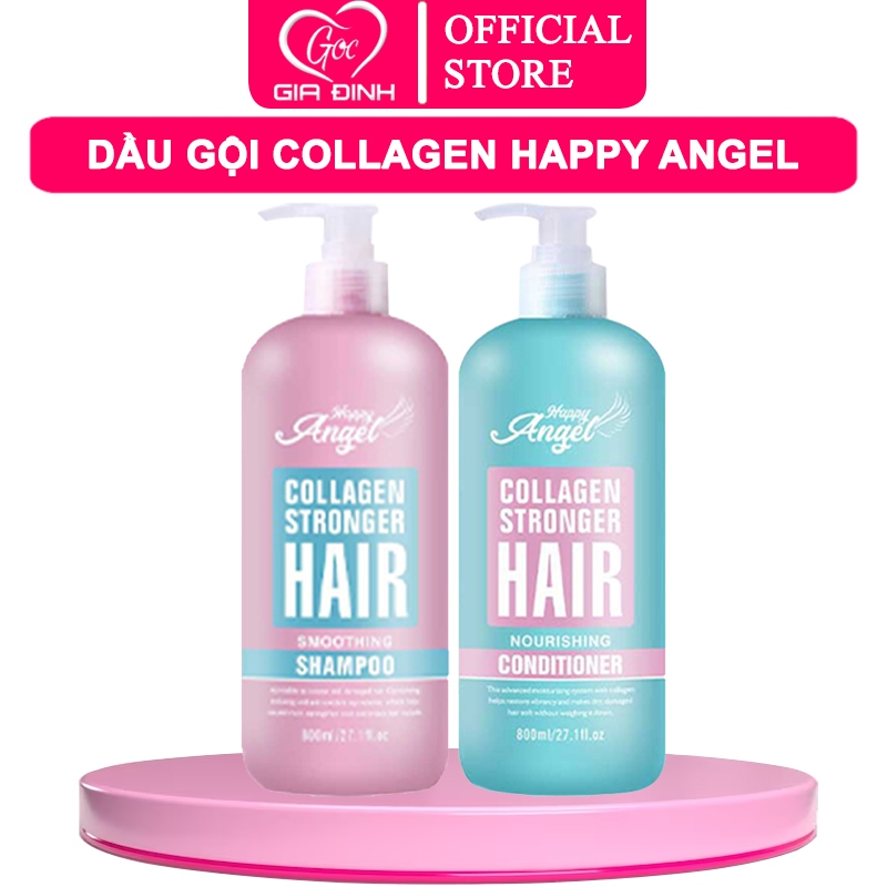 Dầu gội Collagen HAPPY ANGEL 800mlx2 phục hồi tóc hư tổn khô xơ siêu mềm mượt hương nước hoa