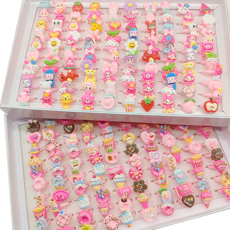 50 Cái / lốc Nhà Máy Bán Buôn Phối Phong Cách Trẻ Em Ngón Tay Nhẫn Nóng Đảng Trang Sức Đáng Yêu Mở Thiết Kế Tất Cả Trận Đấu Nhẫn Donuts Ra bbit Gấu