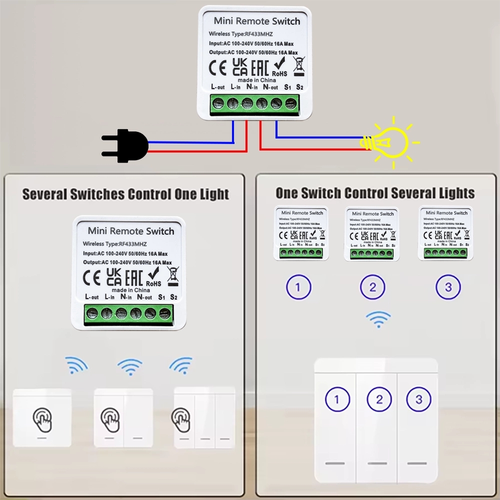 Công tắc thông minh không dây RF 433MHz Gang 86 kiểu điều khiển từ xa 2 chiều