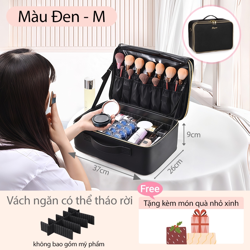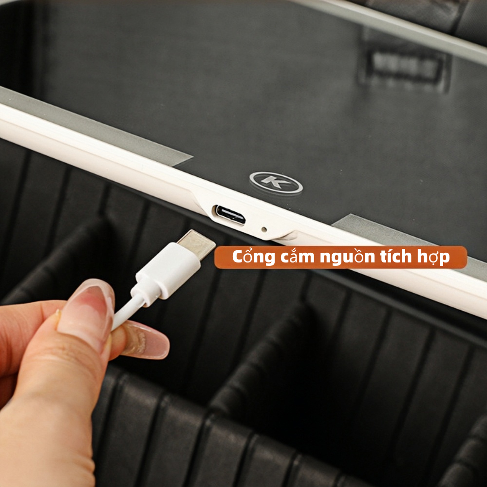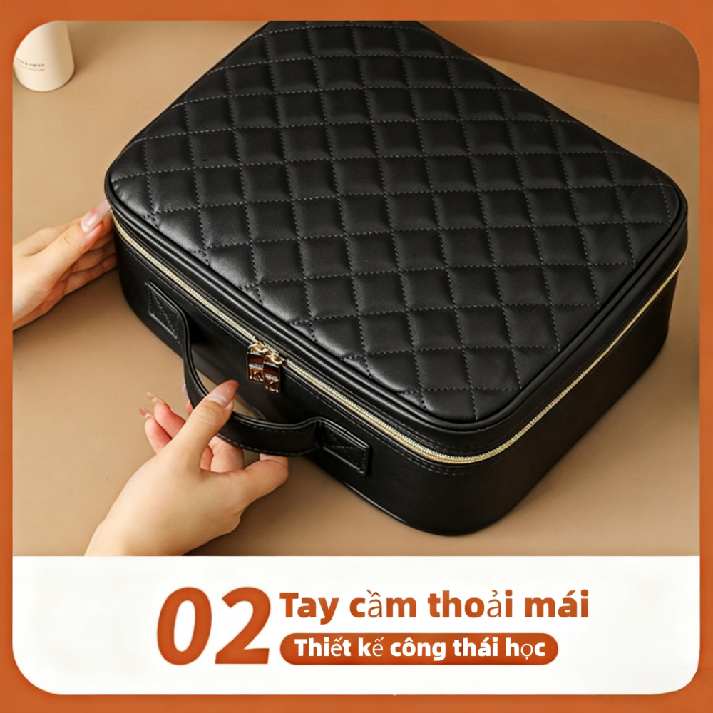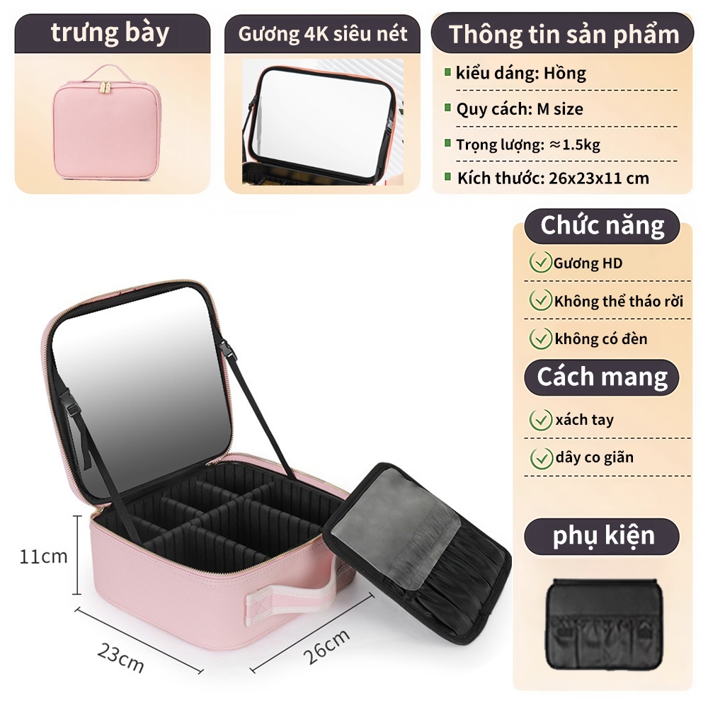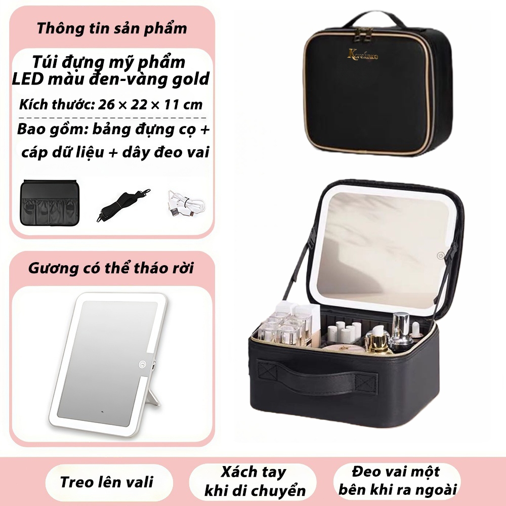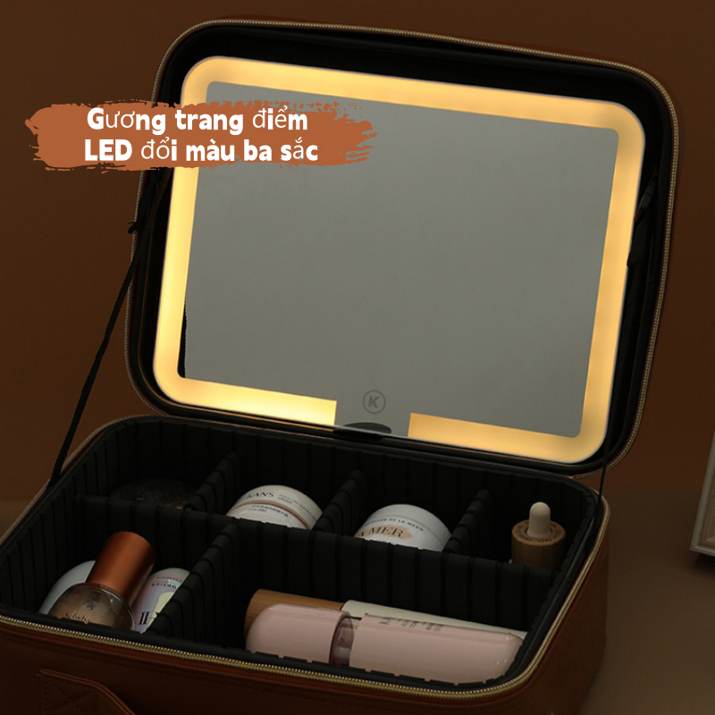 Koreluxco Túi Da Đựng Đồ Trang Điểm Cá Nhân Kèm Gương Đèn LED - Cốp Đựng Mỹ Phẩm Cầm Tay Có Gương