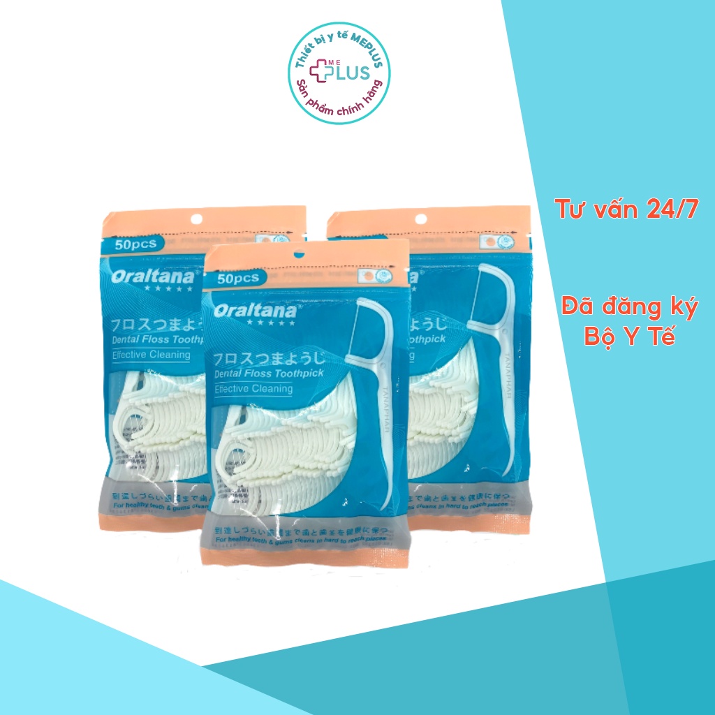 Tăm chỉ nha khoa Oraltana 50 cái, chỉ xỉa răng y tế sợi chỉ siêu mảnh, dẻo dai giúp loại bỏ mảng bám, thức ăn thừa