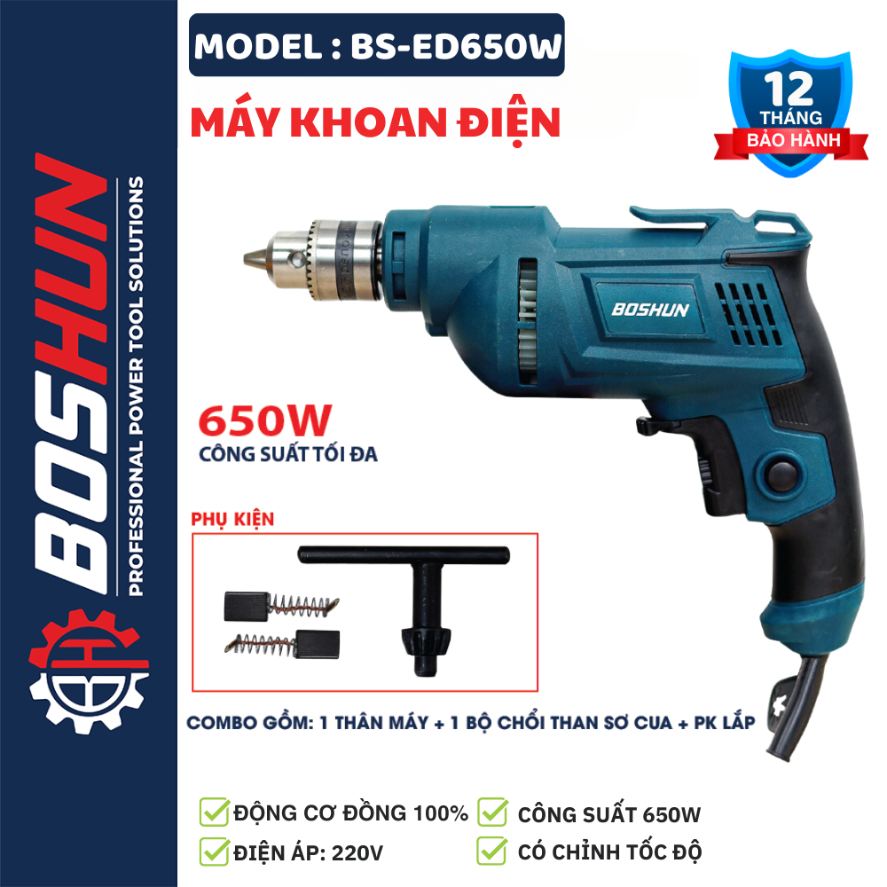 [MỚI NHẤT] Máy Khoan Điện Cầm Tay Boshun BS-ED650W, Công Suất 650W - Đầu Kẹp 10mm - Lõi Đồng 100%
