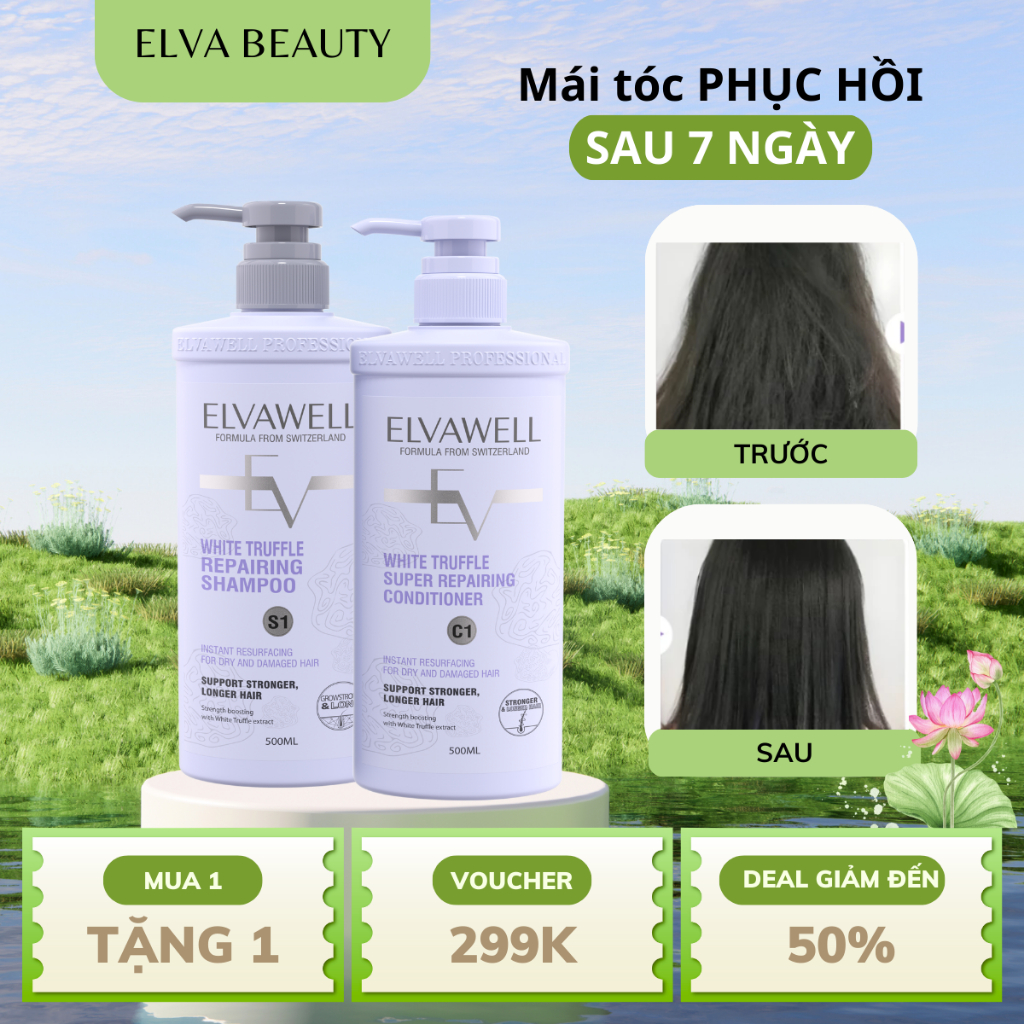 [TÓC HƯ TỔN] Gội xả Elvawell tím nấm Truffle hỗ trợ phục hồi, giảm rụng, suôn mượt, thơm lâu 1000ml