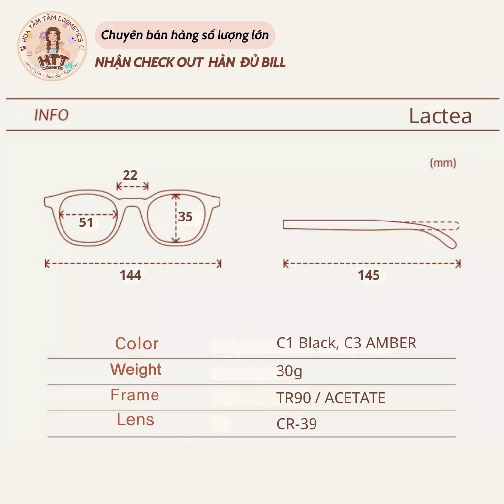 Kính thời trang Unisex Rieti LACTEA Hàn Quốc Nam & Nữ Kính râm đi biển chống tia UV