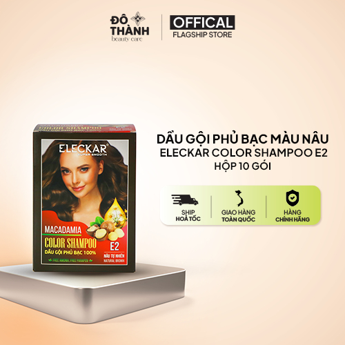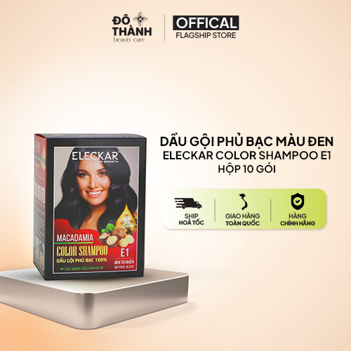Dầu gội phủ bạc thảo dược Eleckar Color Shampoo E1 lên màu tự nhiên không gây khô xơ tóc hộp 10 gói
