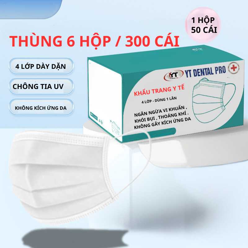 Thùng 300 chiếc ( 6 hộp ) khẩu trang Y TẾ 4 lớp NGƯỜI LỚN DENTAL MASK chính hãng 4 lớp dày dặn chống bụi và tia UV