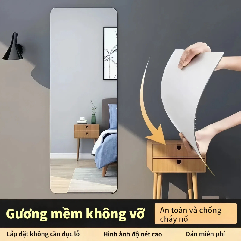 【Bồi thường 100% khi bị vỡ】Gương soi toàn thân dán tường nguyên tấm acrylic 120*30cm/150*40cm