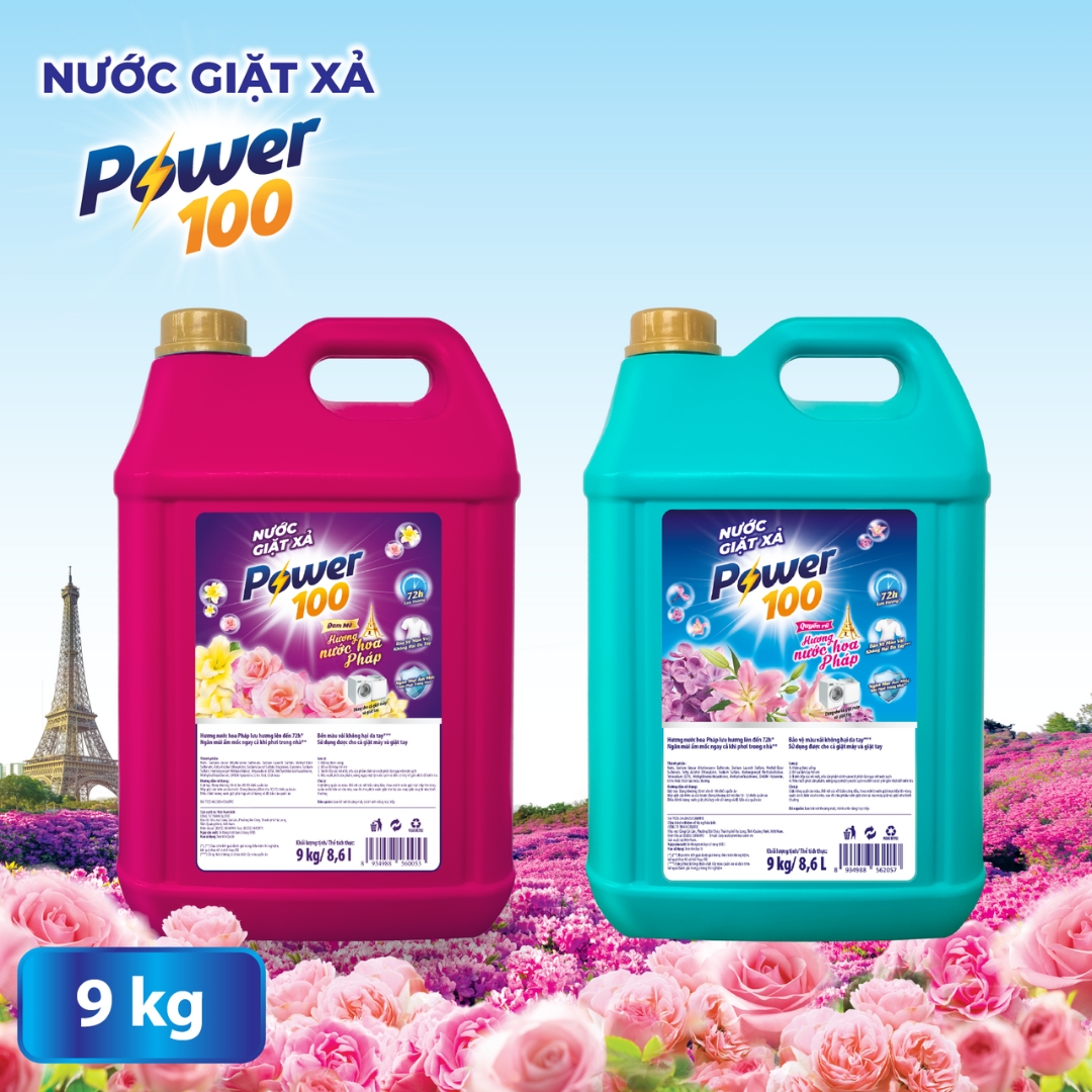 Nước Giặt Xả Power100 Hương Nước Hoa Pháp Quyến Rũ 9.0kg*2