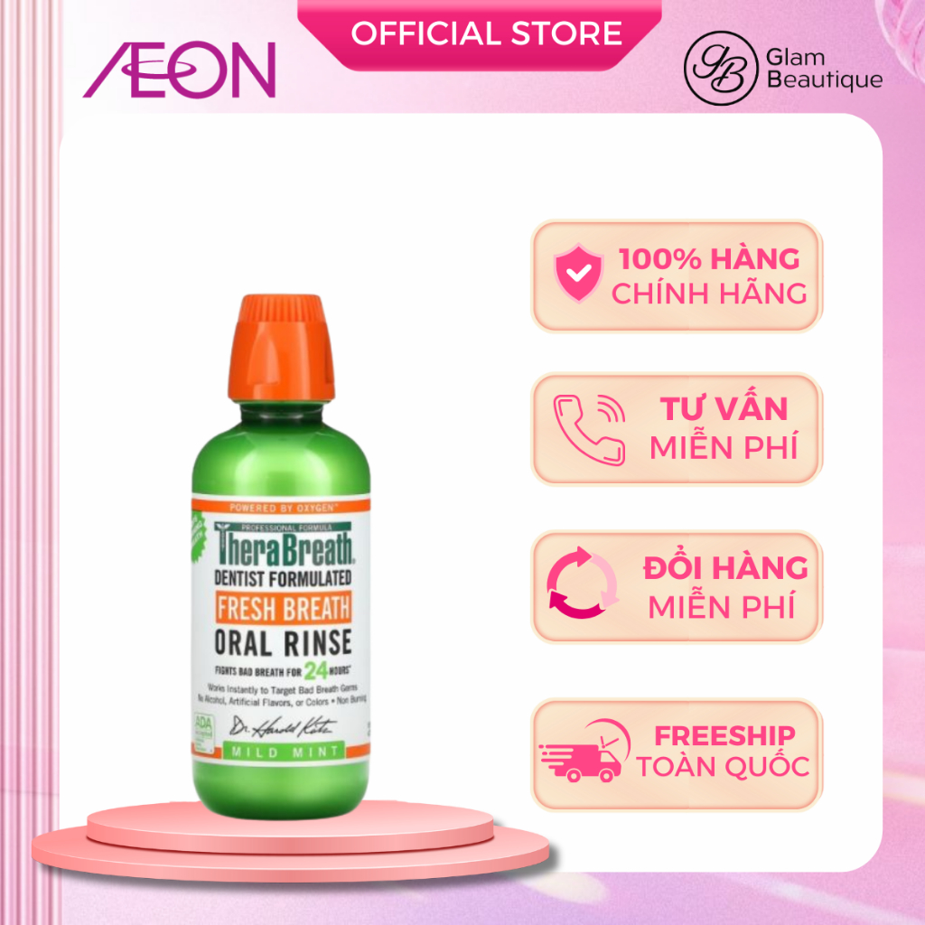 Nước Súc Miệng TheraBreath Mild Mint / Icy Mint 473ml Glam Beautique