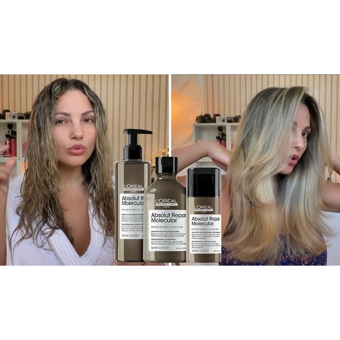 Dầu gội L'Oréal Professionnel Absolut Repair Molecular 500ml và xả serum phục hồi tóc hư tổn