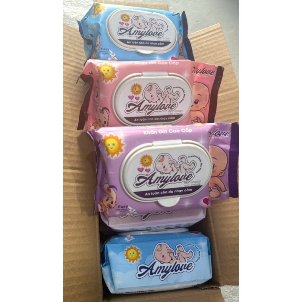 1 & 5 Gói Khăn Ướt Amy Love Không Mùi 500Gr, Không Paraben, Không Cồn, Khăn Lau, Khăn Ướt Amylove