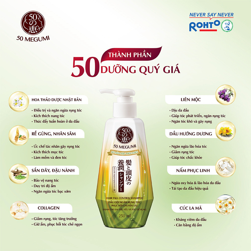 Dầu gội ngăn rụng tóc 50 Megumi Hair Fall Control Shampoo 250ml