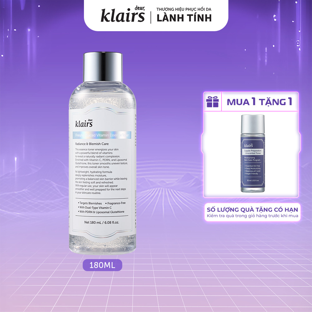 Nước hoa hồng Dear, Klairs Freshly Juiced Vitamin Essence Toner hỗ trợ làm sáng da 180ml [FS]