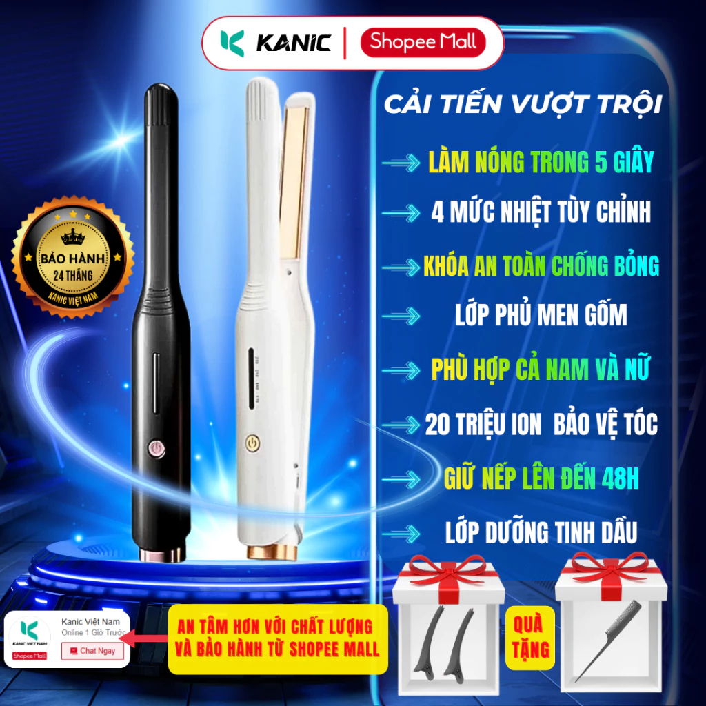 Máy uốn tóc nam nữ tạo kiểu làm xoăn sóng nước 32mm KANIC 2 in1 máy duỗi tóc mini ép side đa năng