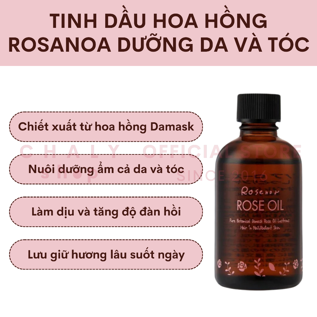 Tinh dầu hoa hồng dưỡng ẩm da & tóc Rosenoa Rose Oil 60ml Nhật