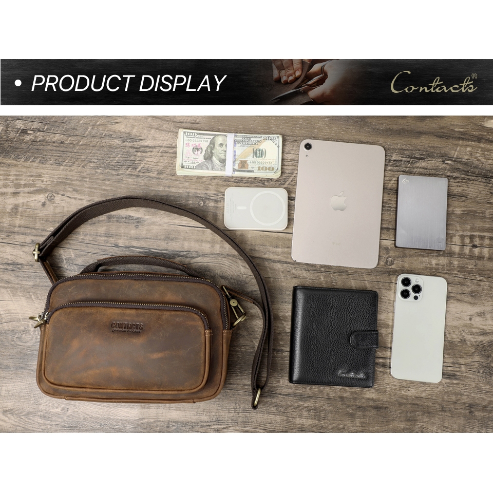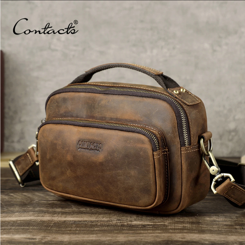 CONTACT‘S Da chính hãng Mens Slant Bag Hanging Vintage Slant Bag Với Xử lý gift for boyfriend