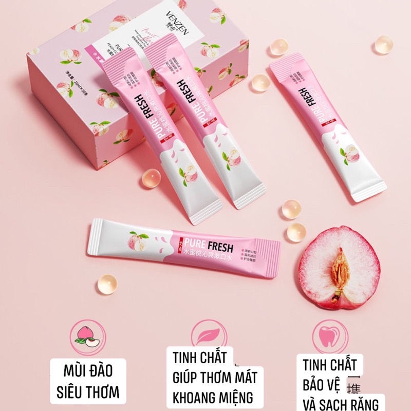[ LẺ 1 TÚI ] NƯỚC SÚC MIỆNG VENZEN HƯƠNG ĐÀO, CAM, BẠC HÀ
