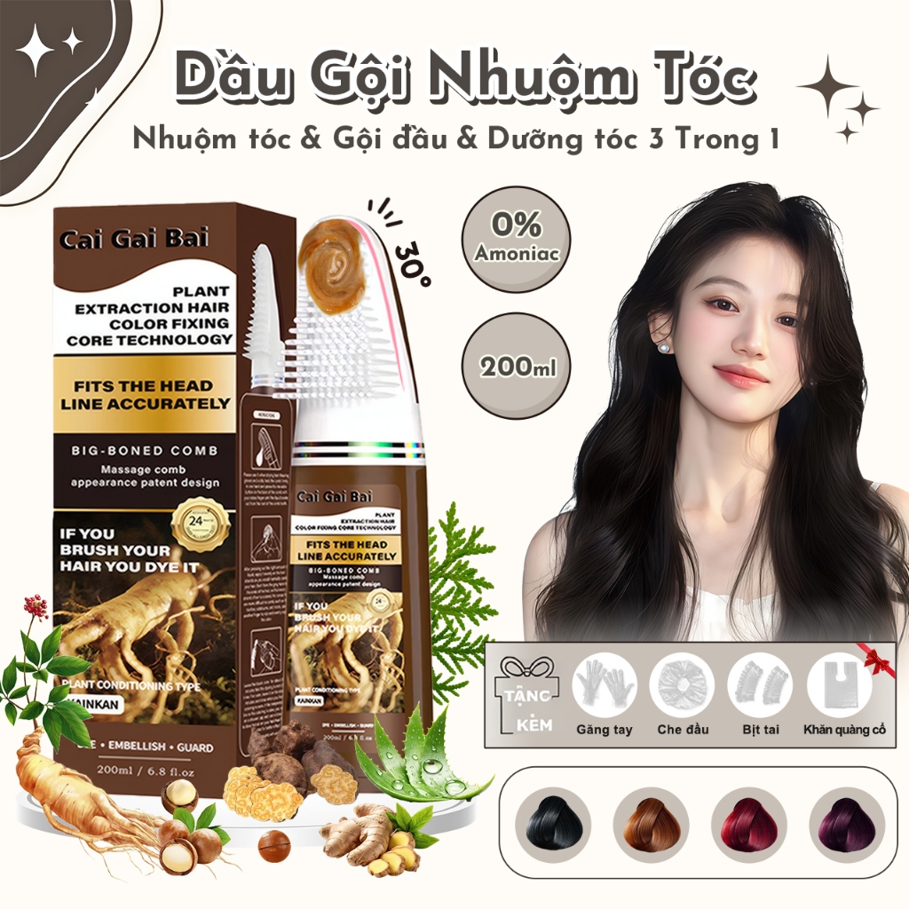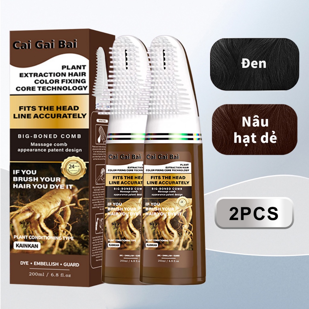Dầu Gội Phủ Bạc Kèm Lược Lớn, Thuốc Nhuộm Tóc Thảo Dược Không Chứa Ammoniac, Không cần tẩy trắng, Che Phủ Tóc Bạc, 200ML