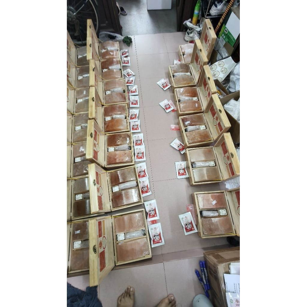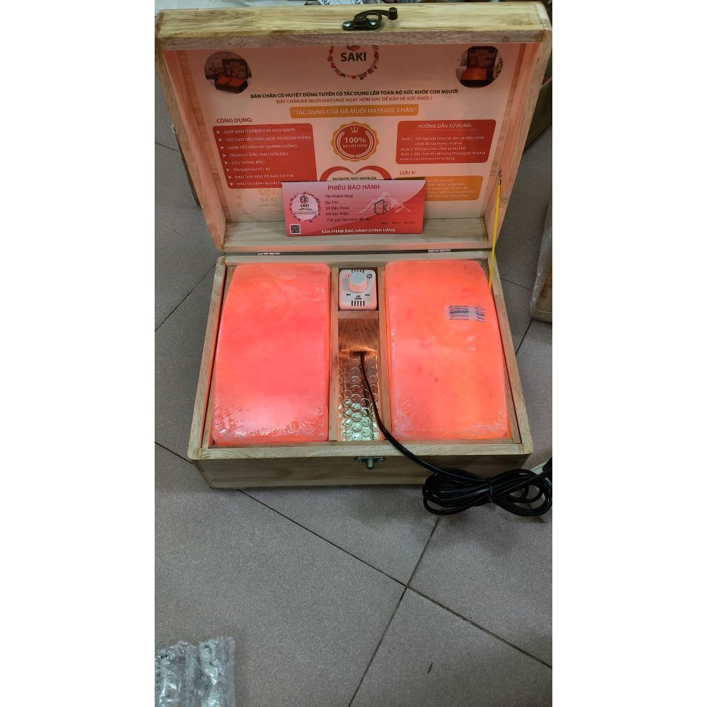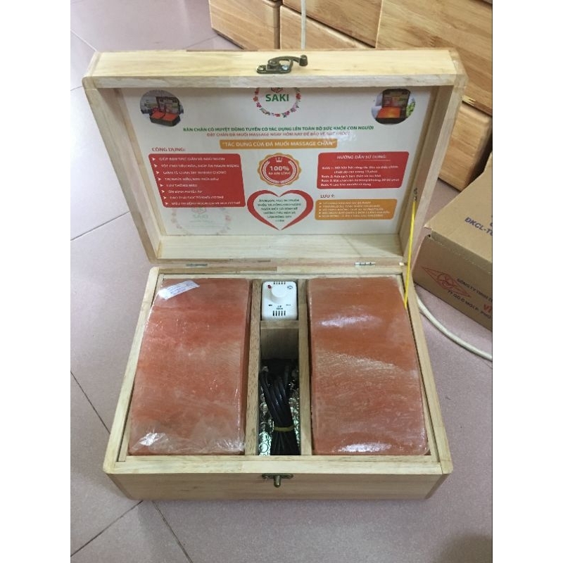 Hộp Massage Chân Đá Muối Himalaya Loai đá đẹp nhất thị trường( 2 viên cong)- Tặng 2 bóng đèn thay thế!!!