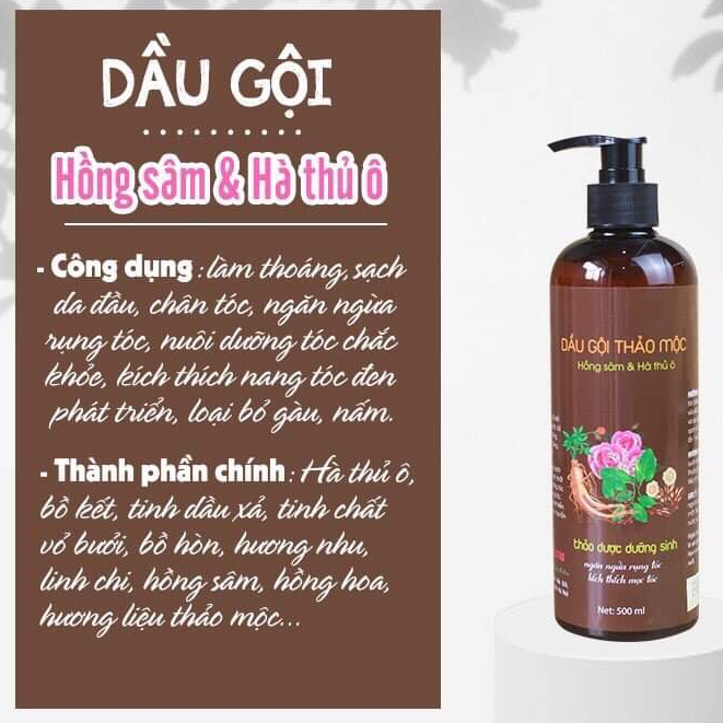 Dầu gội Bồ Kết - Hồng Sâm - Hà Thủ Ô, Giúp mọc tóc con nhanh, Giảm gàu ngứa, Hương thơm dịu nhẹ như gội đầu dưỡng sinh