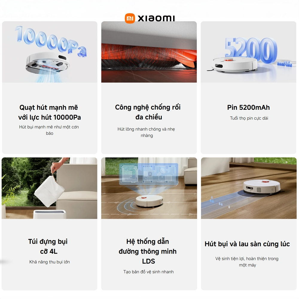 Robot Hút Bụi Lau Nhà Xiaomi Robot Vacuum H40 - Lực Hút Mạnh 10000Pa - Bảo Hành 12 tháng