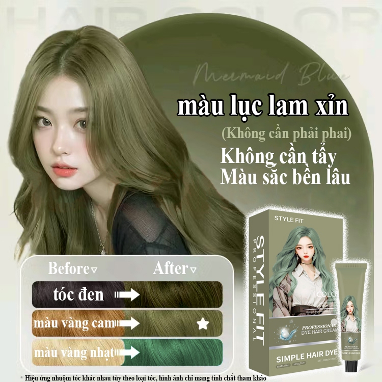 Không cần tẩy Màu sắc bền lâu,Thuốc Nhuộm Tóc🐢🌊màu lục lam xỉn,Nhẹ nhàng và không gây kích ứng,thuốc nhuộm tóc thực vật