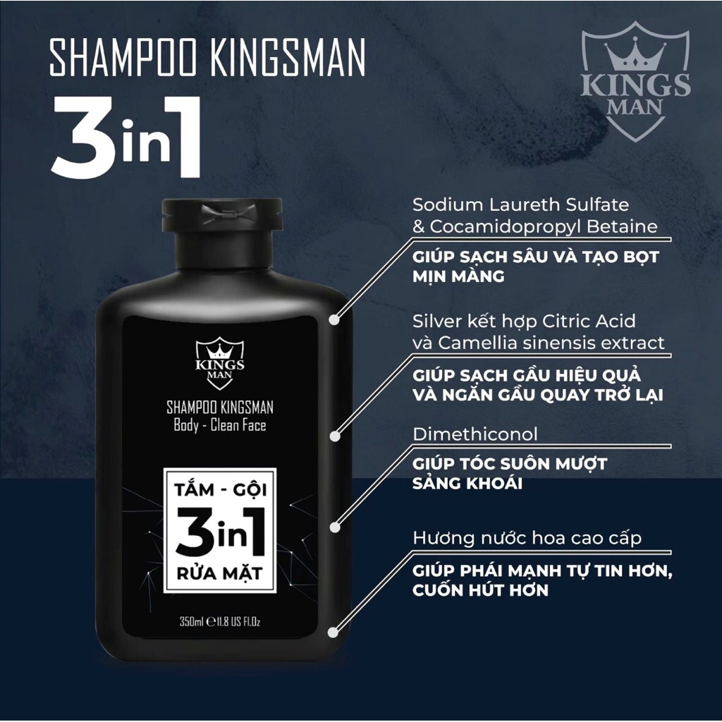 Dầu Gội sữa tắm 3 in 1 KingsMan cho nam 3 trong 1 với hương nước hoa châu Âu cao cấp