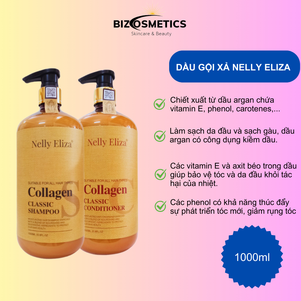 Dầu gội xả Nelly Eliza Collagen phục hồi tóc siêu mượt, giúp mọc tóc 1000ml/chai