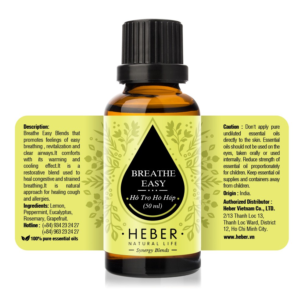 Tinh Dầu Hỗ Trợ Hô Hấp Breathe Easy Blend Heber Natural Life Thiên Nhiên Nguyên Chất, 10ml/30ml/50ml