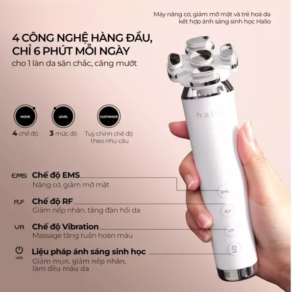 Máy Nâng Cơ, Giảm Mỡ Mặt & Trẻ Hoá Da kết hợp Ánh Sáng Sinh Học Halio - Tăng Sinh Collagen, Trẻ Hóa Da, An Toàn Tại Nhà