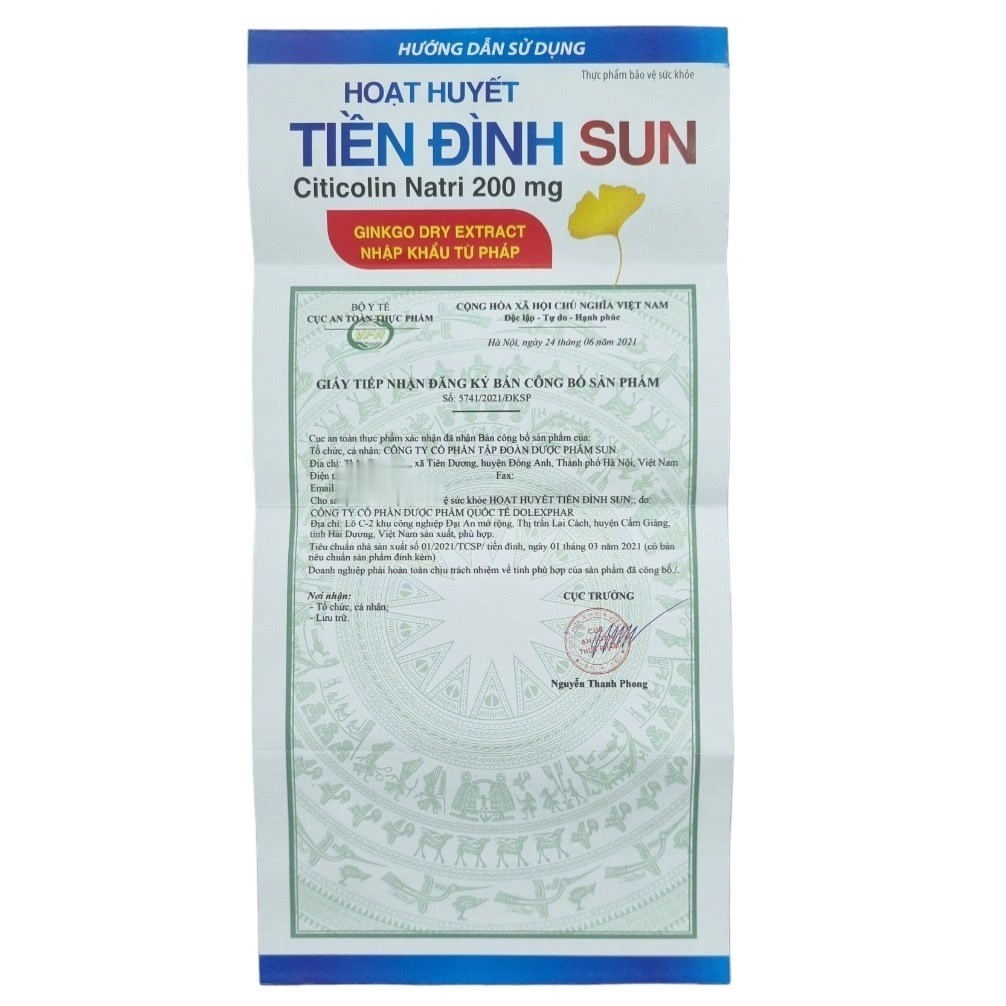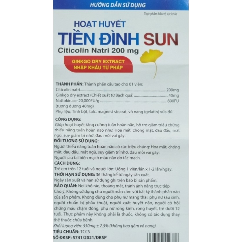 HOẠT HUYẾT TIỀN ĐÌNH SUN Giúp giảm hoa mắt, chóng mặt, đau đầu, mất ngủ, đau mỏi vai gáy