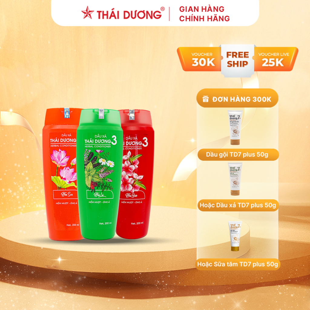 Dầu xả dược liệu Thái Dương 3 dung tích 200ml mềm mượt, giảm rụng tóc