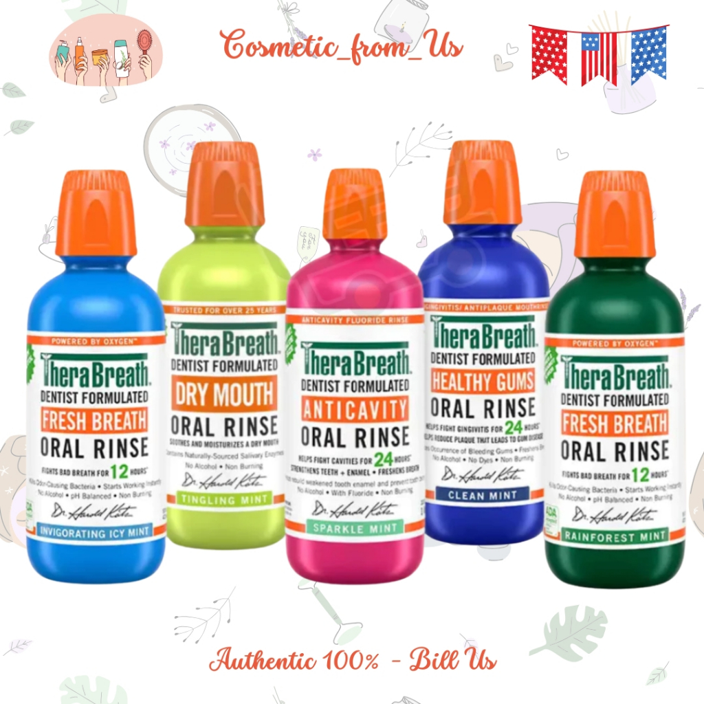[Bill US] Nước súc miệng TheraBreath 473ml, hơi thở thơm tho, ngừa sâu răng và giảm vôi răng