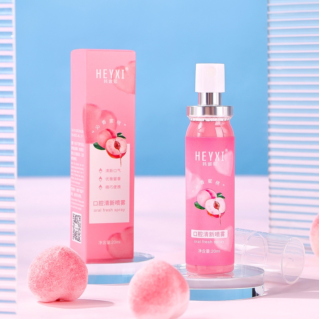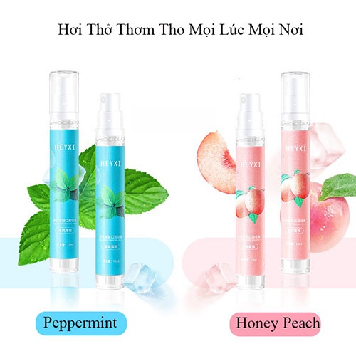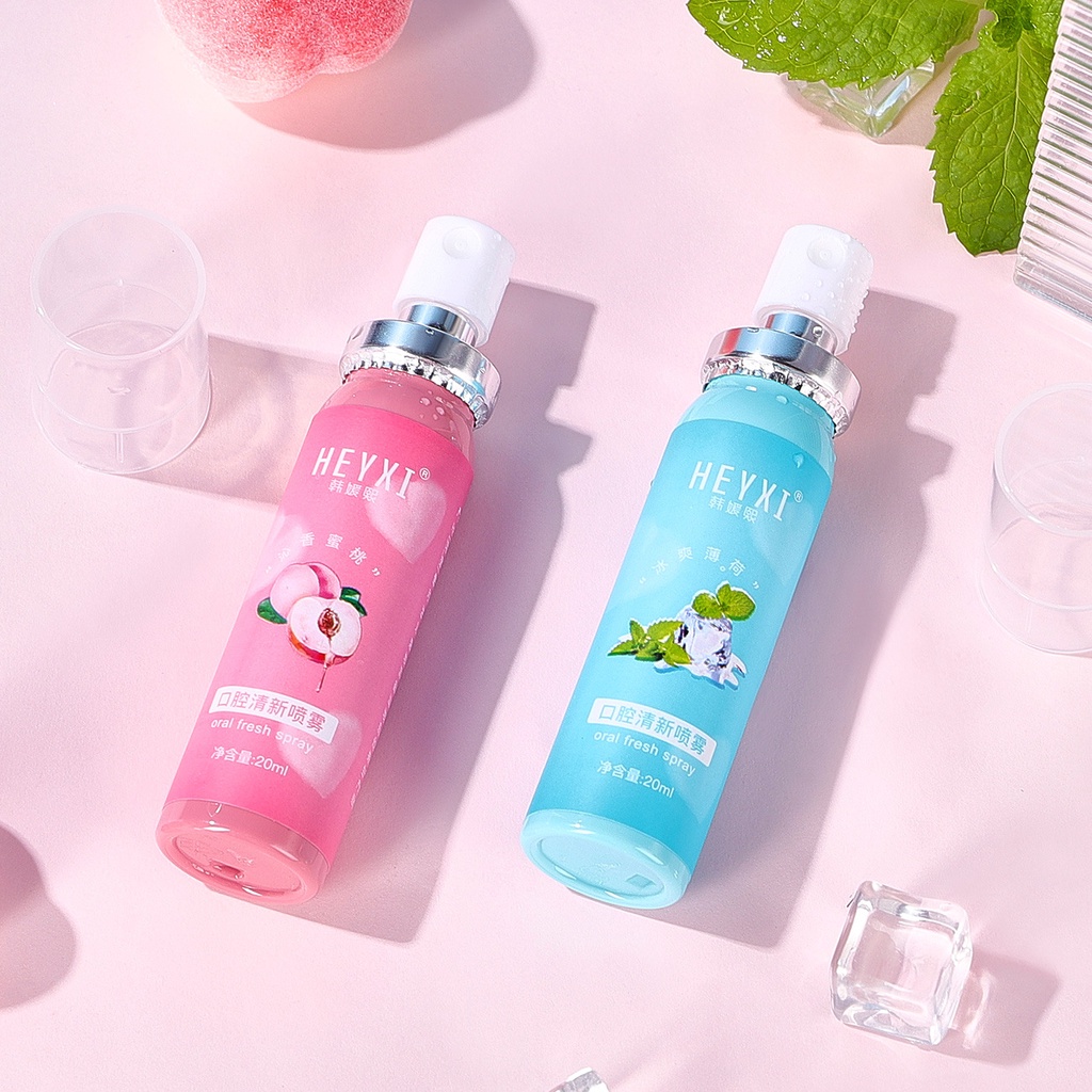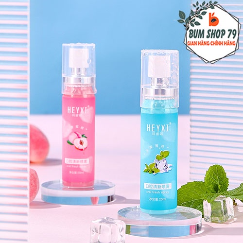 Combo 3 Chai xịt thơm miệng Heyxi 20ml cho hơi thở thơm mát, Xịt thơm miệng vị đào bạc hà dạng chai