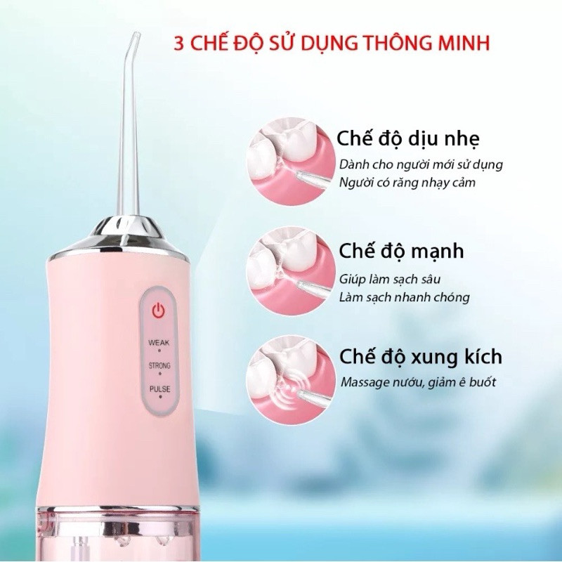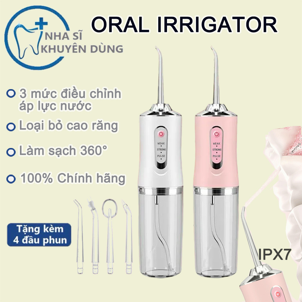 Máy tăm nước quốc tế, nha sĩ khuyên dùng, loại cao răng, 4 đầu phun, dung tích 230ml, cầm tay