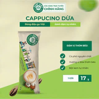 Cà Phê Cappuccino Dừa Just Viet (HỘP) - Đúng Điệu Gu Việt - HỘP 10 GÓI x 17g