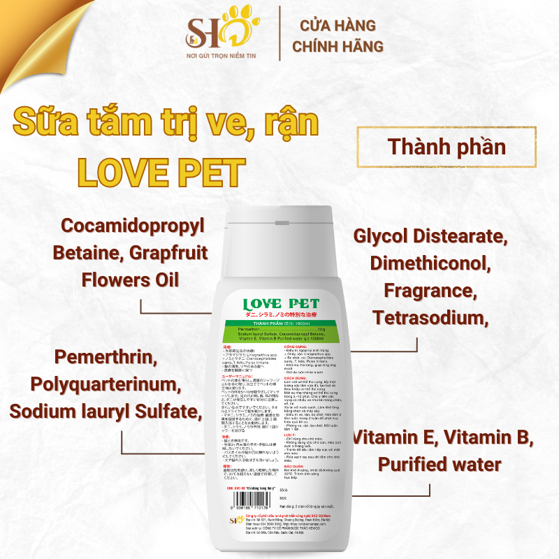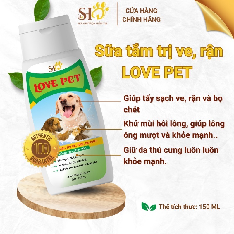 Sữa tắm chó mèo Love Pet 150ml diệt ve rận bọ chét, an toàn cho da, khử mùi hôi tinh chất hương hoa