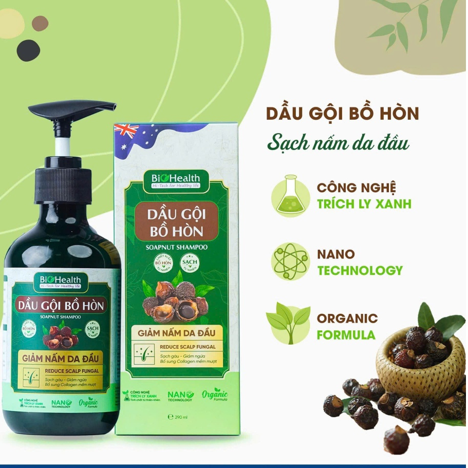 Dầu Gội Bồ Hòn BioHealth 290ml - Hỗ Trợ Giảm Nấm Ngứa, Sạch Gàu, Giúp Tóc Dày & Mượt