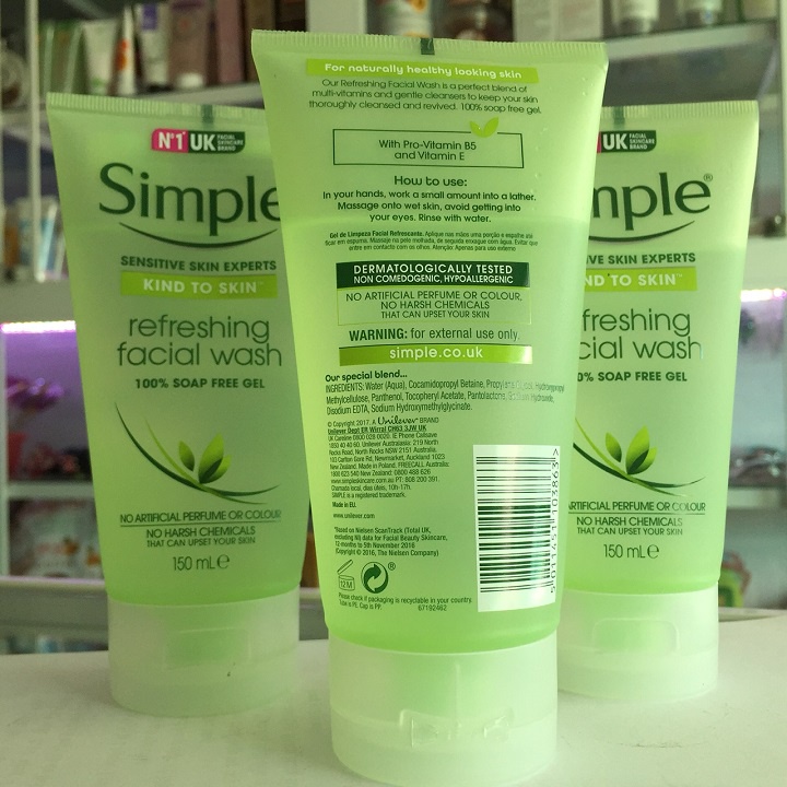 Sữa Rửa Mặt Simple Dạng Gel Nhẹ Dịu Kind To Skin Refreshing Facial Wash Tuýp 150ml