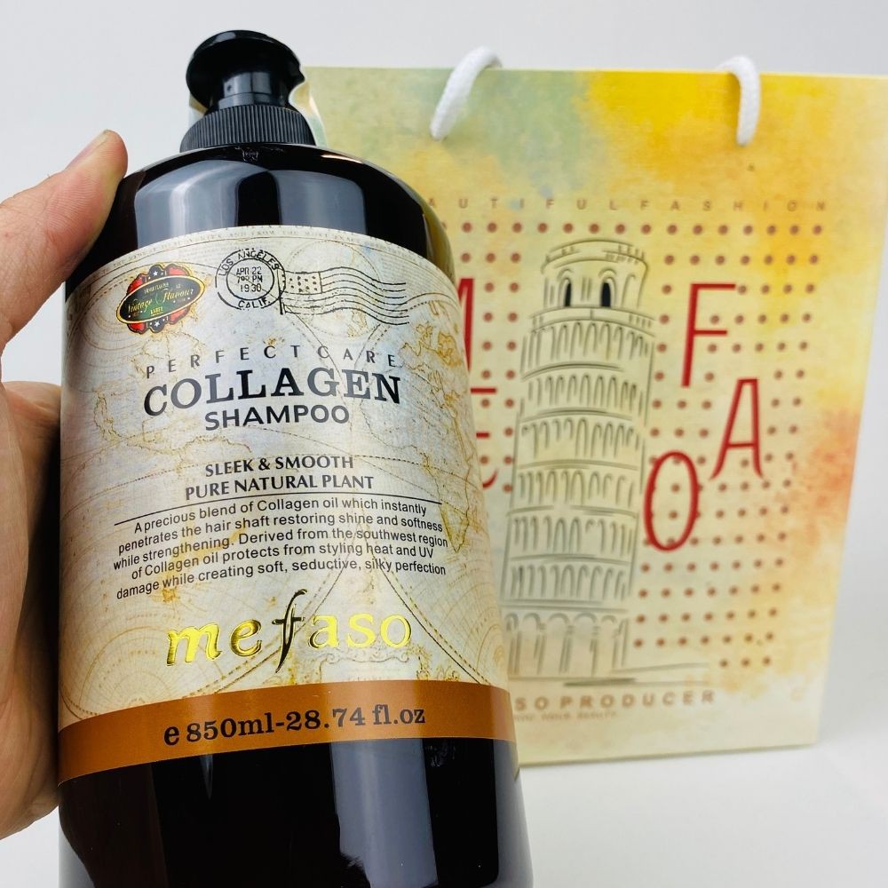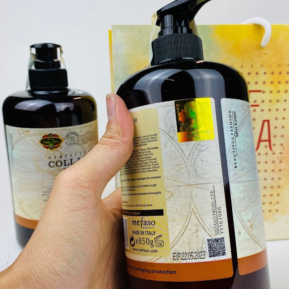 Cặp dầu gội xả Collagen Mefaso Italia phục hồi tóc hư tổn. dầu gội, dầu xả collagen tóc chắc khỏe, mềm mượt