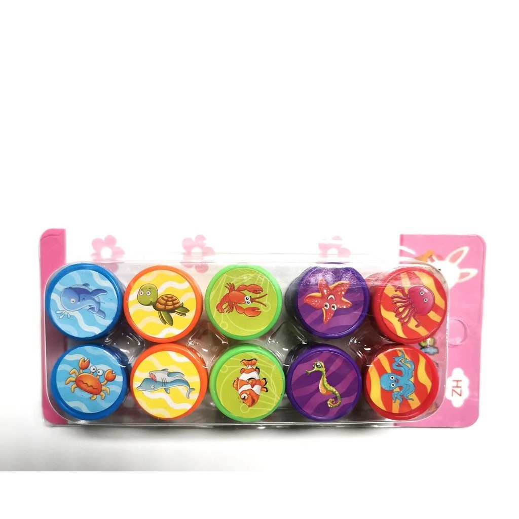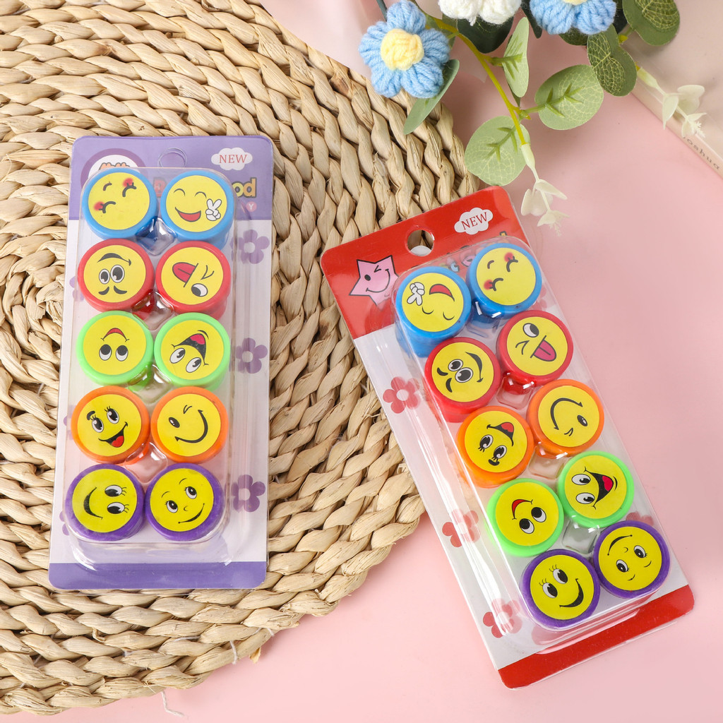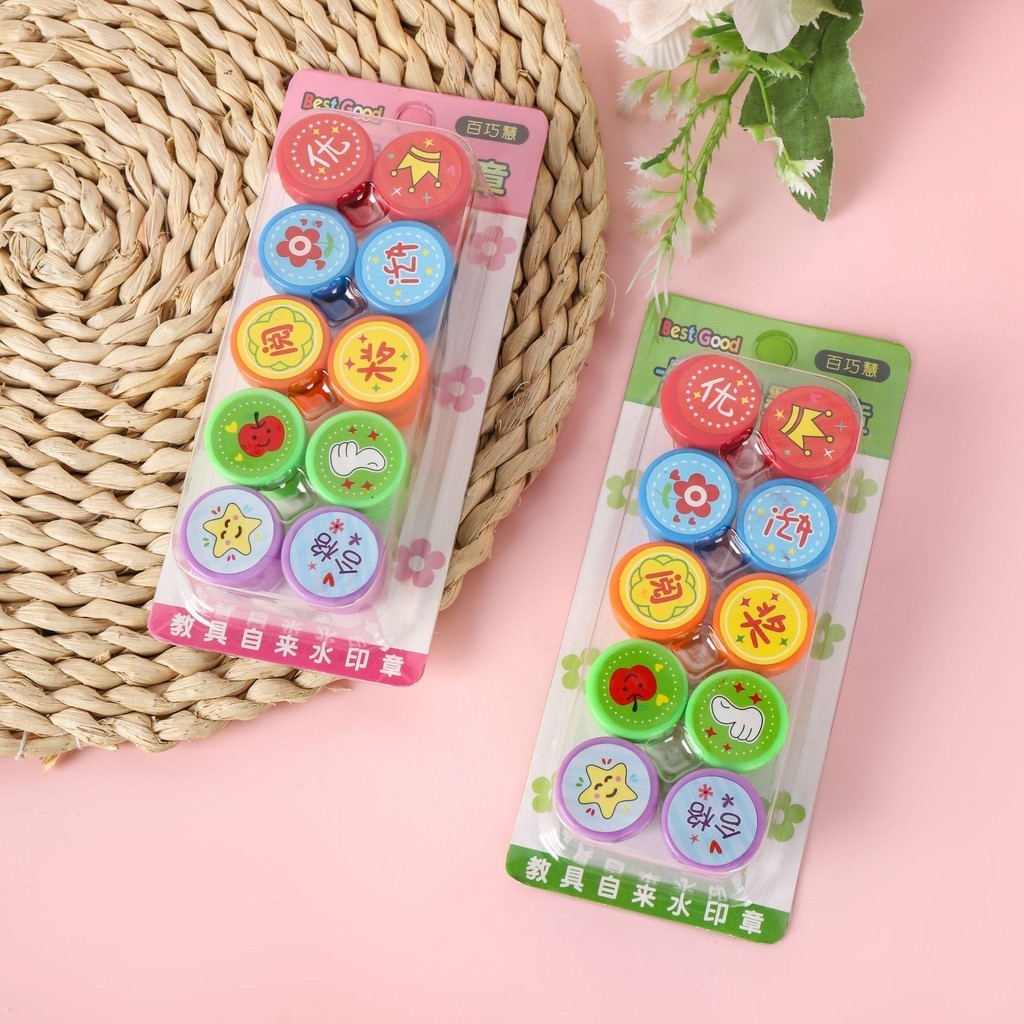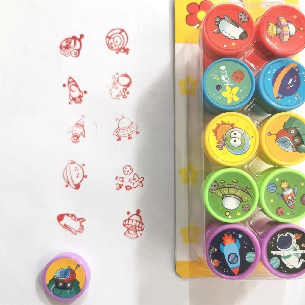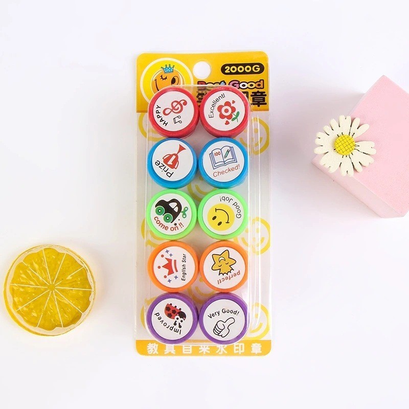 Hộp 10 con dấu hoạt hình cute dễ thương tạo động lực khích lệ dành cho bé